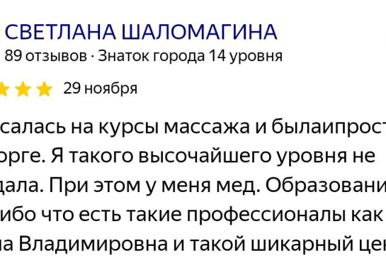 - Победитель чемпионата России по spa-массажу в 2017г.
